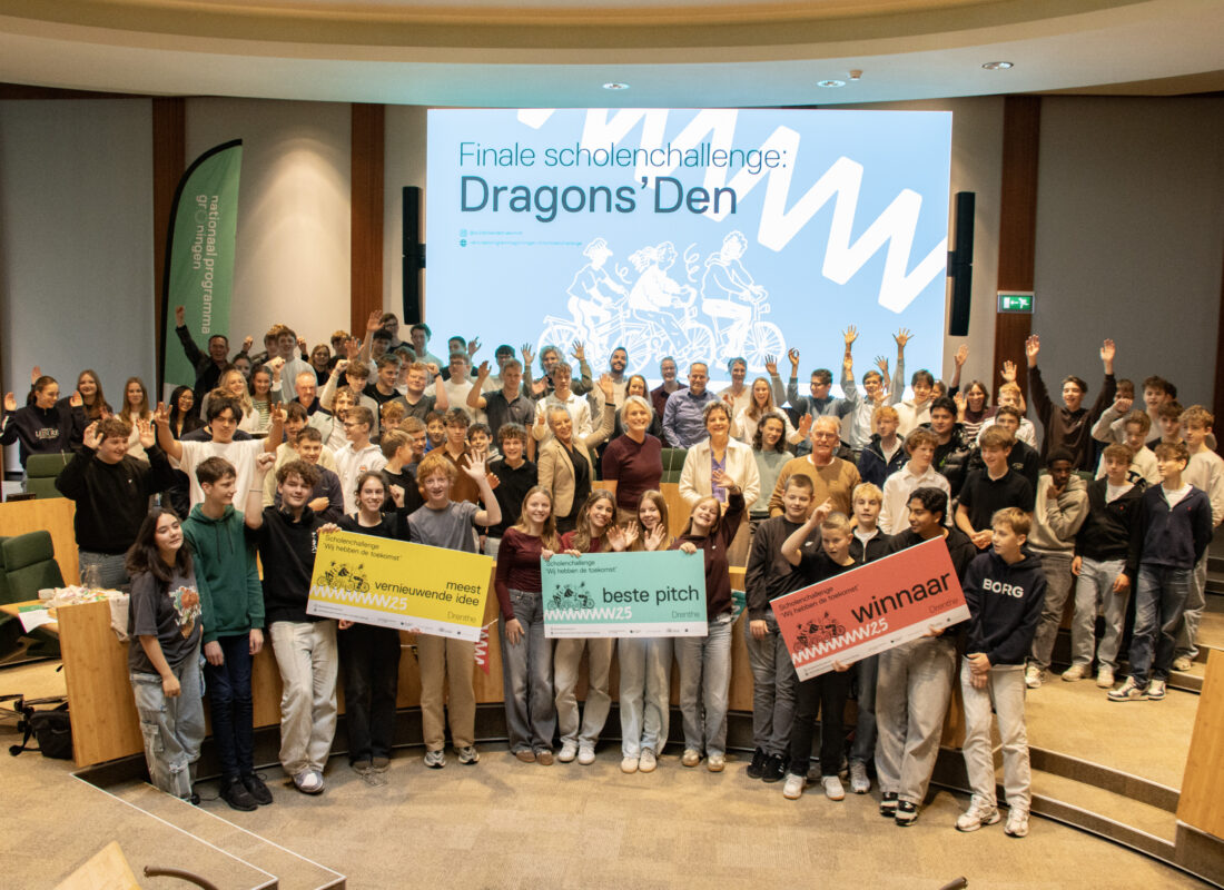 De Dragons’ Den is onderdeel van de scholenchallenge ‘Wij hebben de toekomst’ en werd georganiseerd door ons programma in samenwerking met Stichting Technasium, provincie Groningen en provincie Drenthe. Het doel van de scholenchallenge is om jongeren actief mee te laten denken én doen aan de toekomst van hun eigen regio.