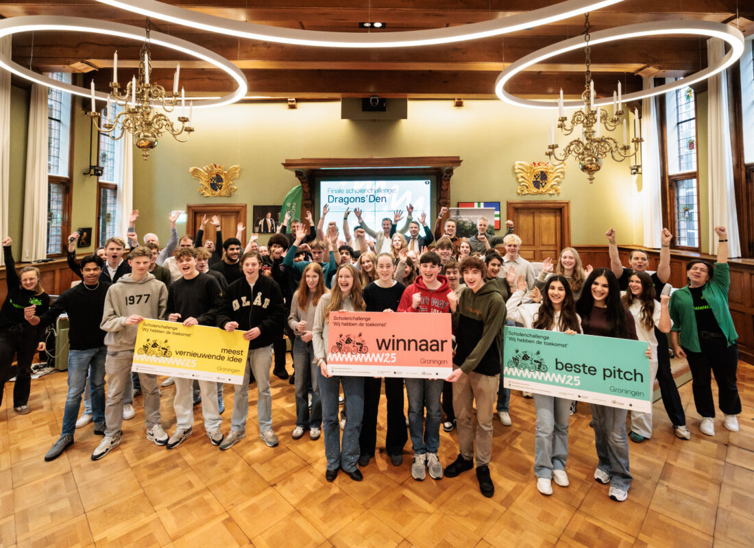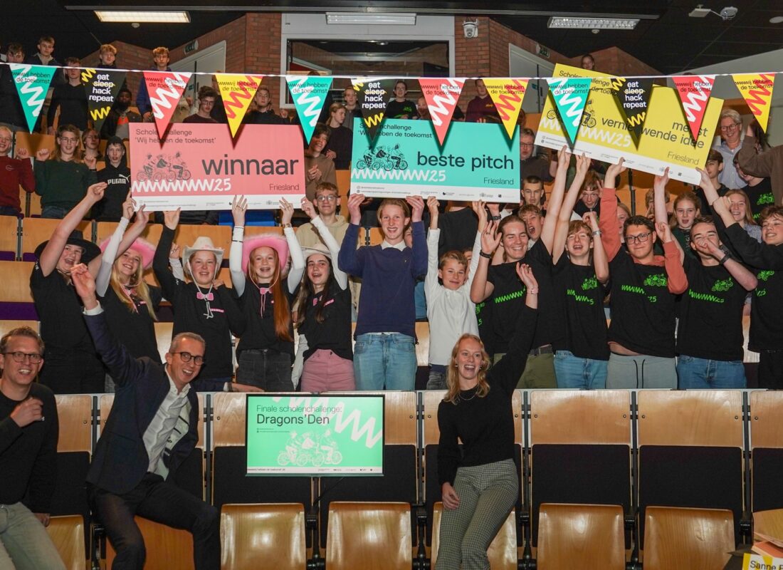 Vandaag stonden jongeren uit Groningen, Friesland en Drenthe op het podium tijdens de Dragons’ Den finale van de scholenchallenge ‘Wij hebben de toekomst’ 2025. Na een eerdere 30-uurs hackathon en acht weken van prototypes bouwen, testen en onderzoek presenteerden ze nu hun slimme en creatieve oplossingen voor groener, slimmer en toekomstbestendig vervoer. Van elektrische buurtbussen tot groene straten en slimme mobiliteitshubs: de deelnemers lieten zien hoe het vervoer van morgen eruit kan zien.