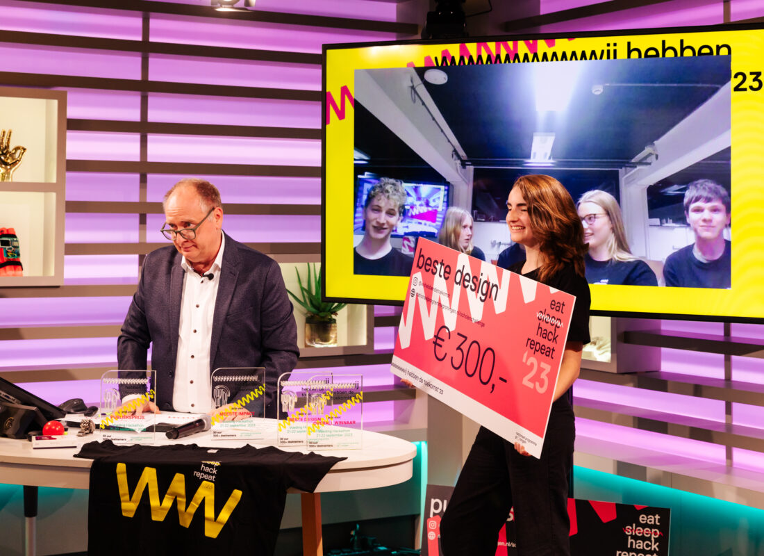 Een hackathon is een soort snelkookpan… onder hoge tijdsdruk kun je veel mooie dingen bereiken. Die tijdsdruk zorgt ervoor dat teams meer focus hebben en sneller bijzaken van hoofdzaken gaan scheiden. Speciaal om de teams te helpen staan er experts en andere hulptroepen stand-by. De hackathon sloten we af met een pitchfilmpje waarin de teams online hun oplossing presenteren aan de jury. Met de hackathon konden de teams leuke prijzen winnen!